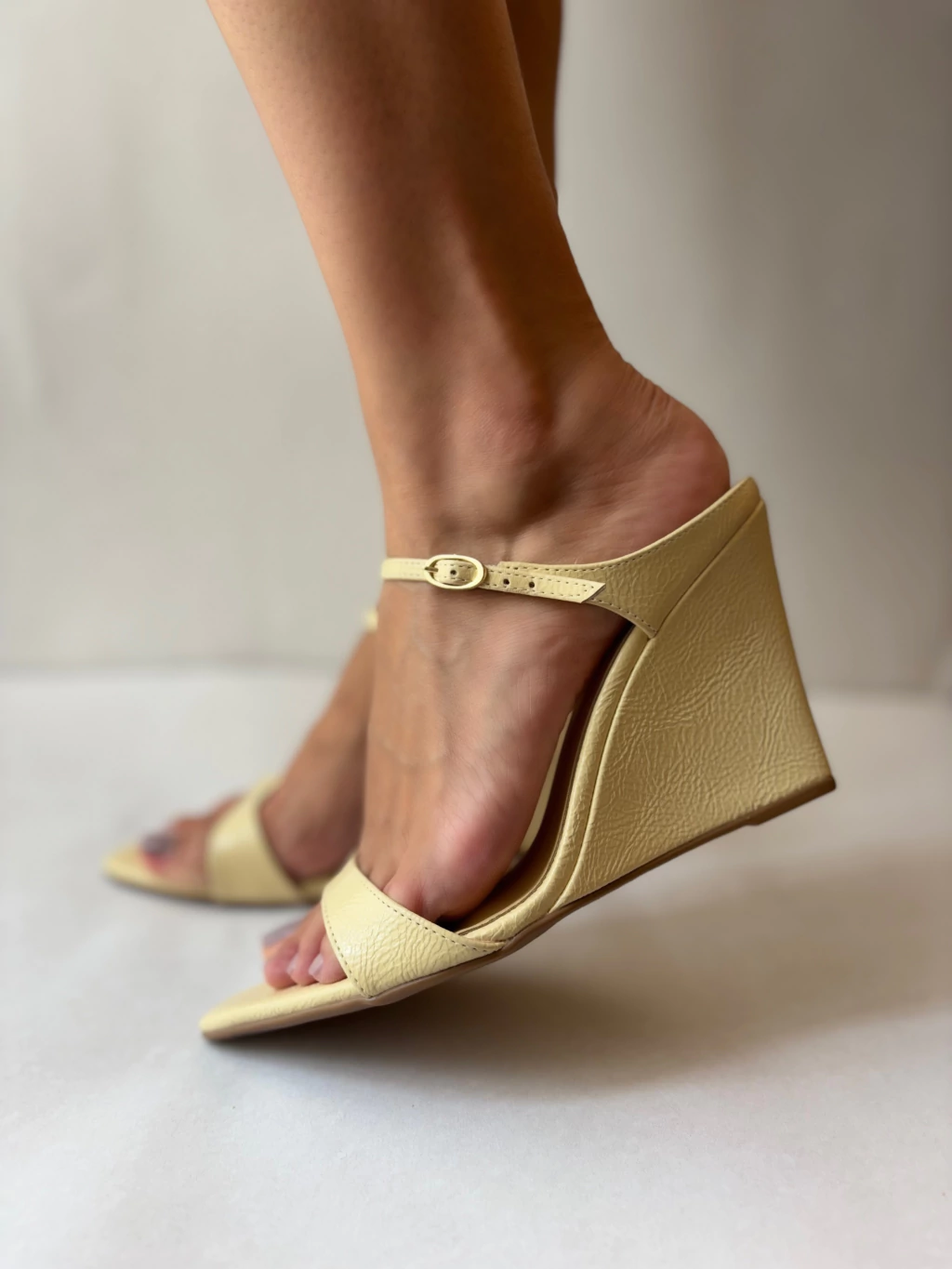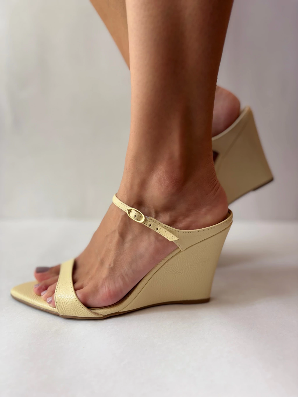 Sandália Anabela Bege/yellow butter com Tiras – Elegância e Conforto no Dia a Dia